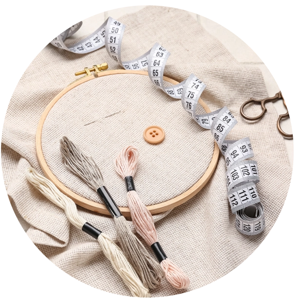 Stretching the linen canvas tightly across a wooden hoop creates the ideal tension for elaborate needlework. Piercing the weave with a sharp needle pulls the stranded cotton into intricate floral motifs. Raised satin stitches catch the light beautifully.