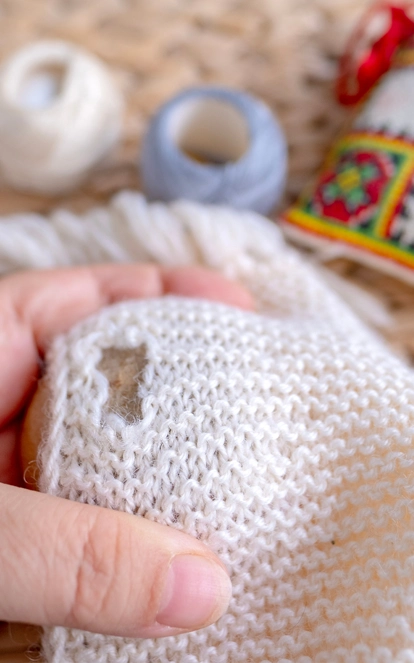 Catching only a single thread creates completely undetectable stitches on skirts.